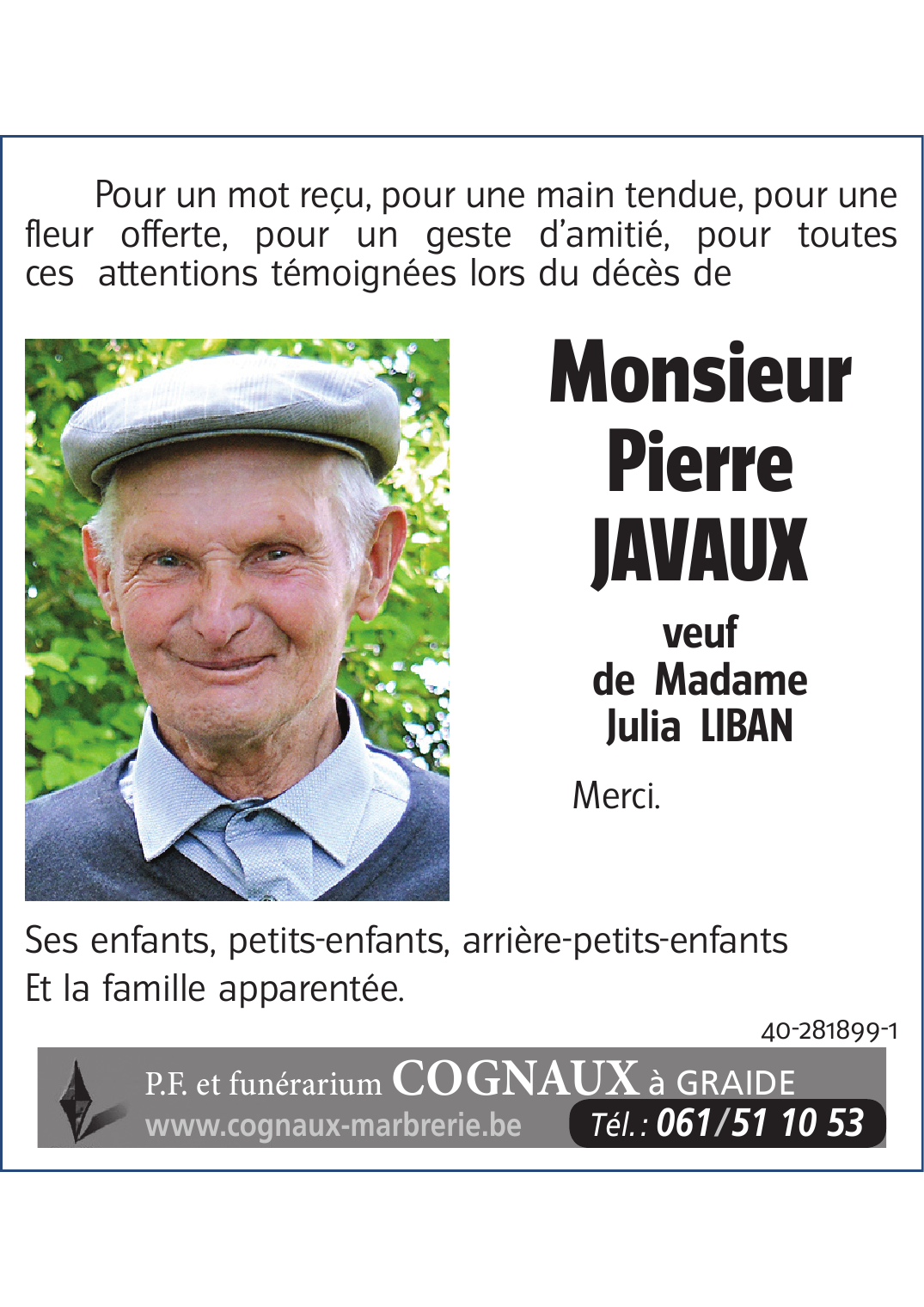 Né à Gros-Fays (5555) le mardi 22 septembre 1925