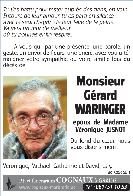 Décédé à Mont-Godinne (5530) le samedi 2 novembre 2019 à l'âge de 73 ans