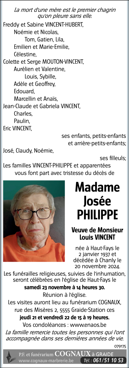 Née à Haut-Fays (6929) le samedi 2 janvier 1937