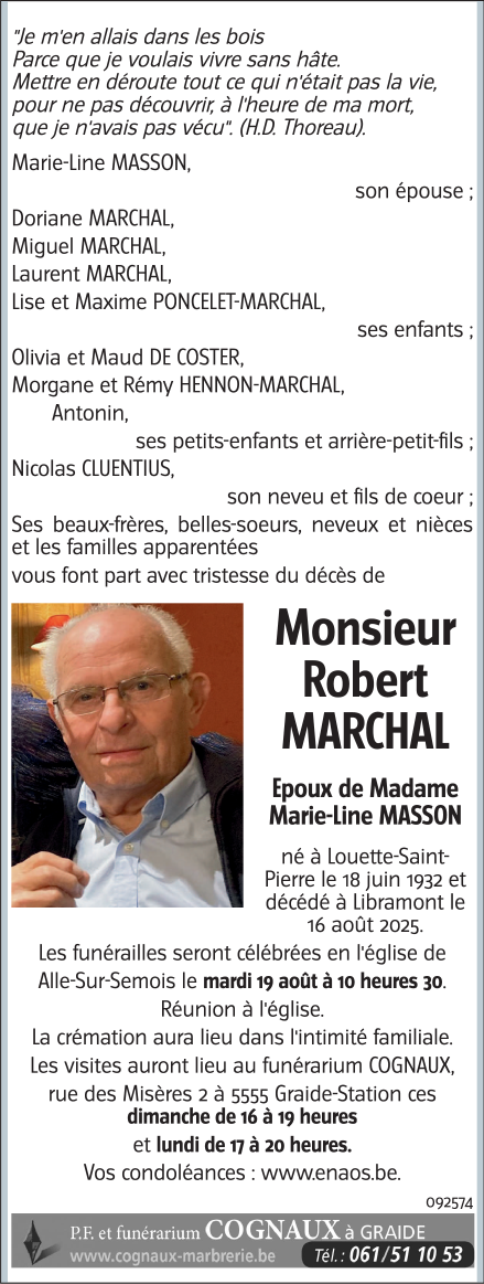 Décédé à Libramont (6800) le samedi 16 août 2025 à l'âge de 93 ans