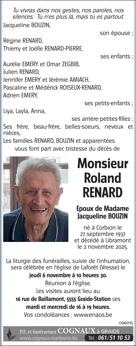 Décédé à Libramont (6800) le dimanche 2 novembre 2025 à l'âge de 88 ans