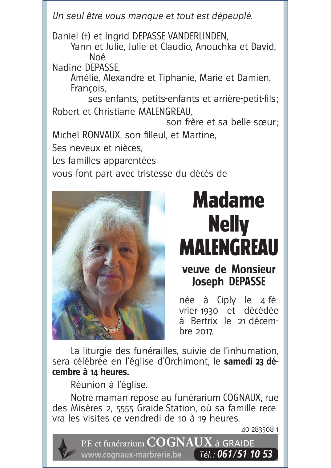 Veuve de Monsieur Joseph DEPASSE
