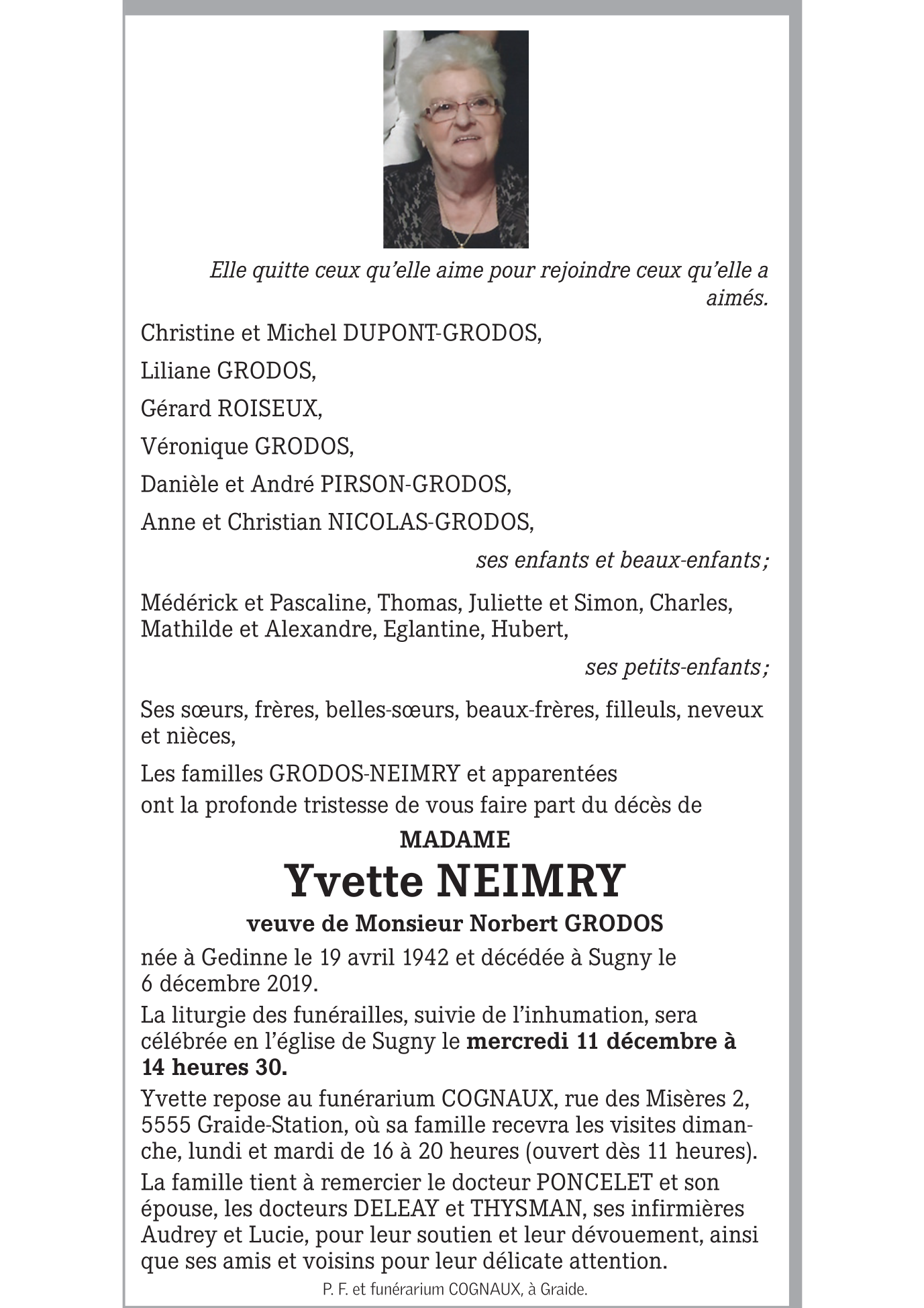 Madame Yvette NEIMRY
