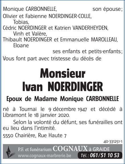 Décédé à Libramont (6800) le jeudi 23 janvier 2020 à l'âge de 72 ans