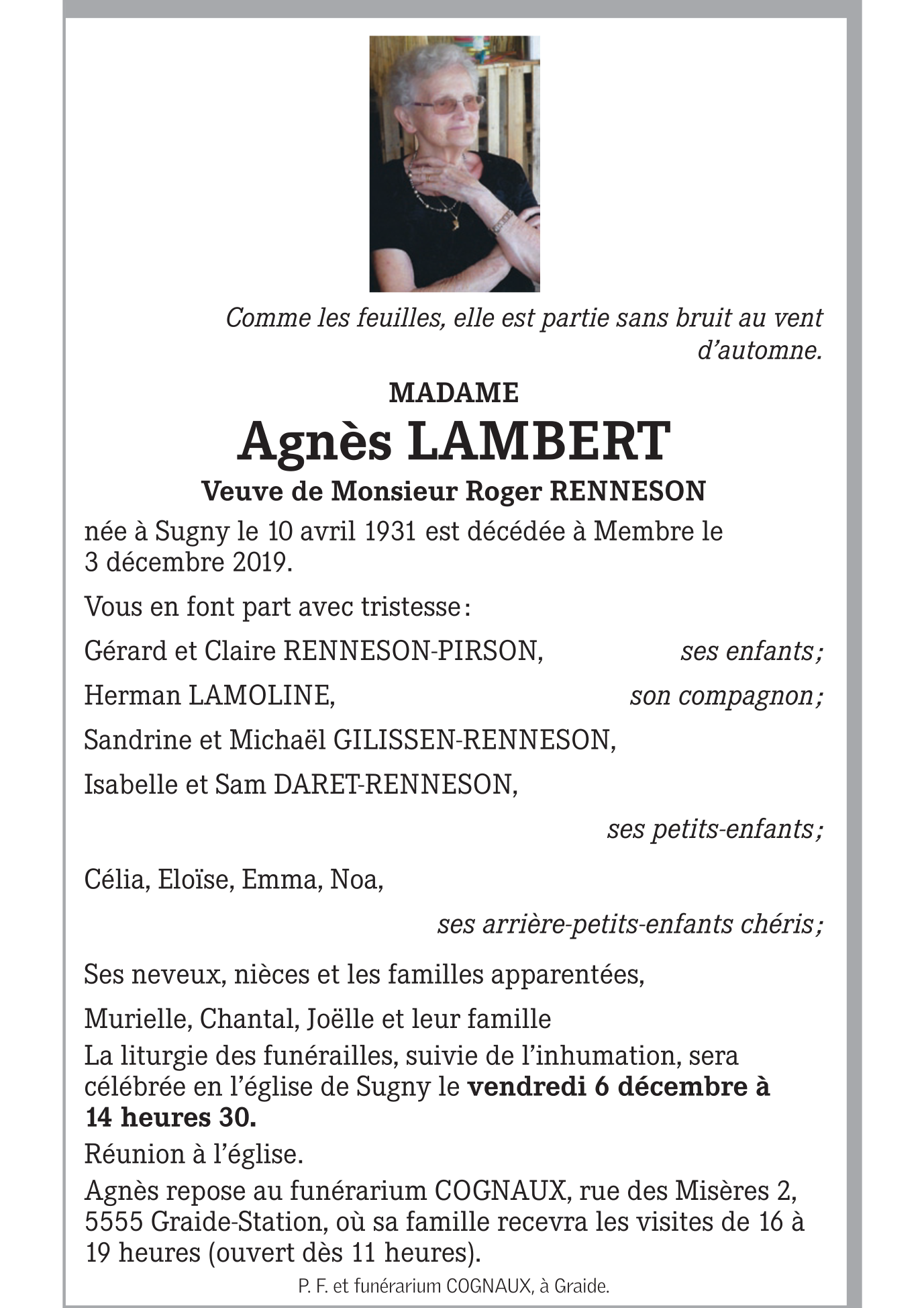 Décédée à Membre (5550) le mardi 3 décembre 2019 à l'âge de 88 ans