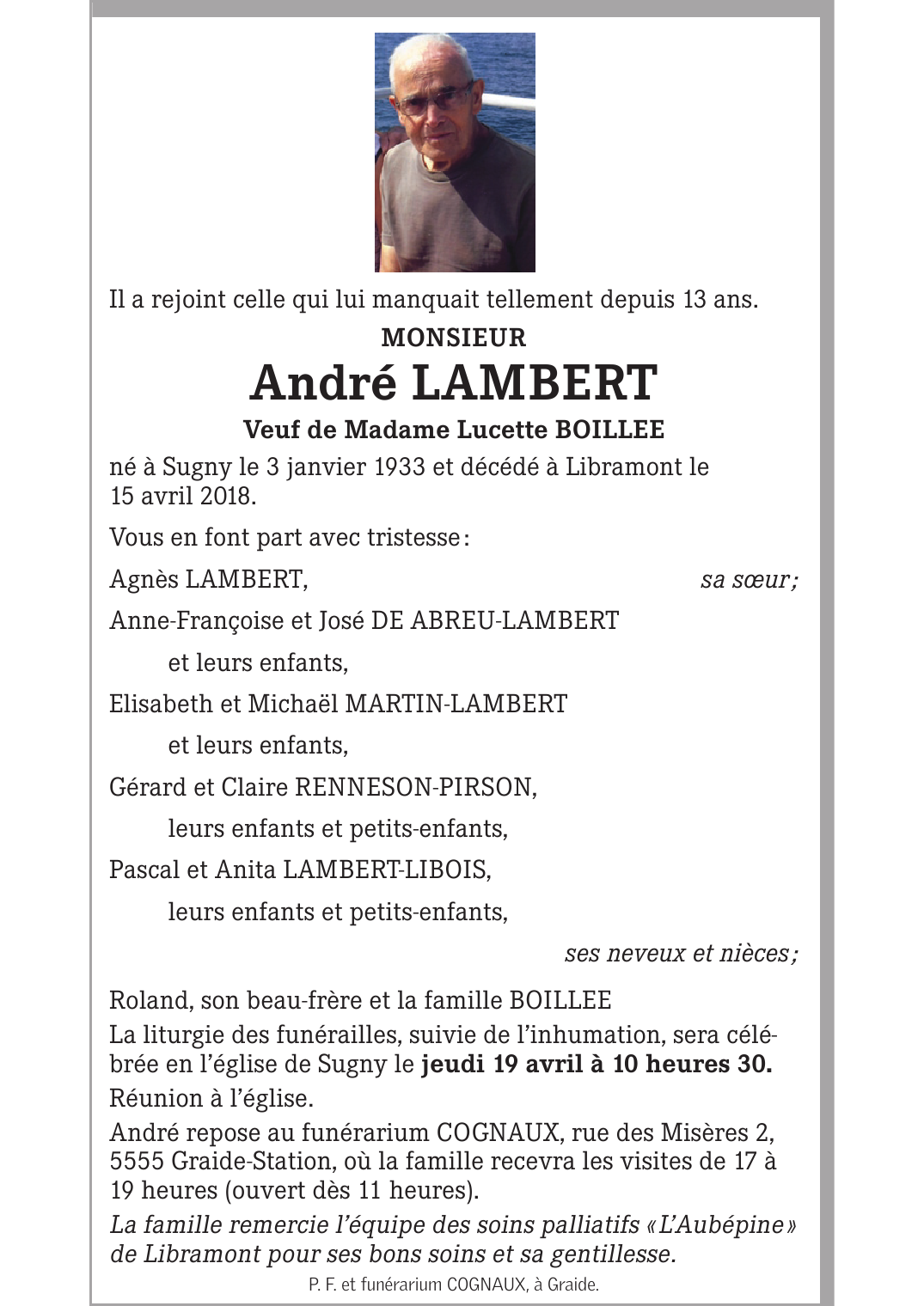 Décédé à Libramont (6800) le dimanche 15 avril 2018 à l'âge de 85 ans