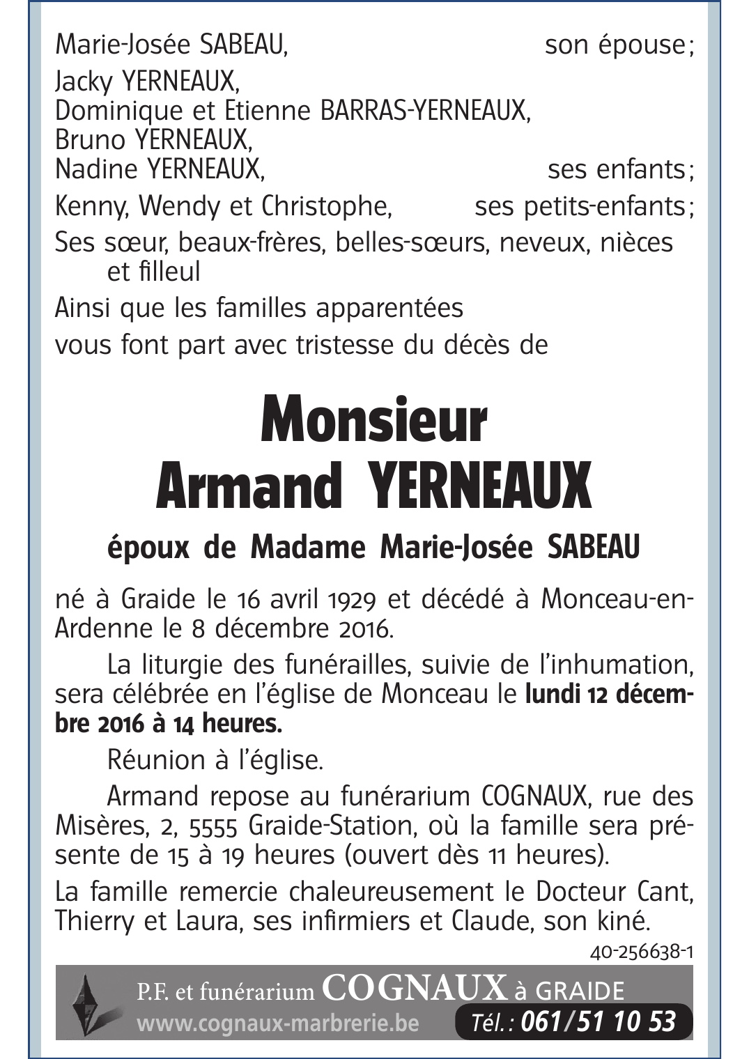 Décédé à Monceau-en-Ardenne (5555) le jeudi 8 décembre 2016 à l'âge de 87 ans