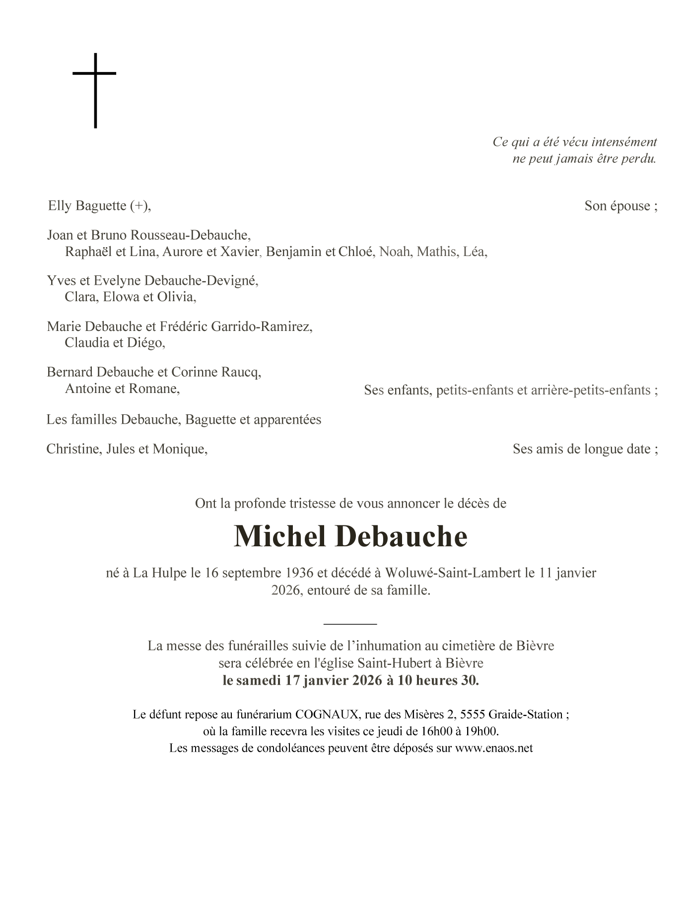 Décédé à Bruxelles (Woluwe-Saint-Lambert) (1200) le dimanche 11 janvier 2026 à l'âge de 89 ans
