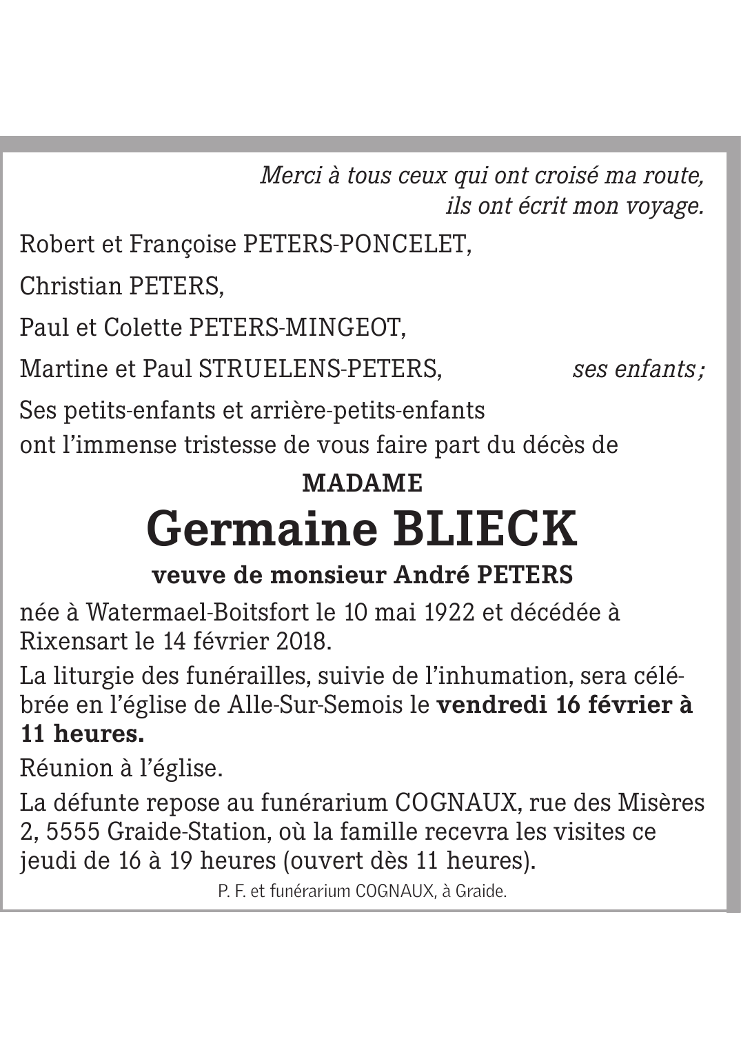 Madame Germaine BLIECK