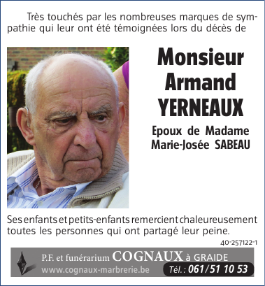 Décédé à Monceau-en-Ardenne (5555) le jeudi 8 décembre 2016 à l'âge de 87 ans