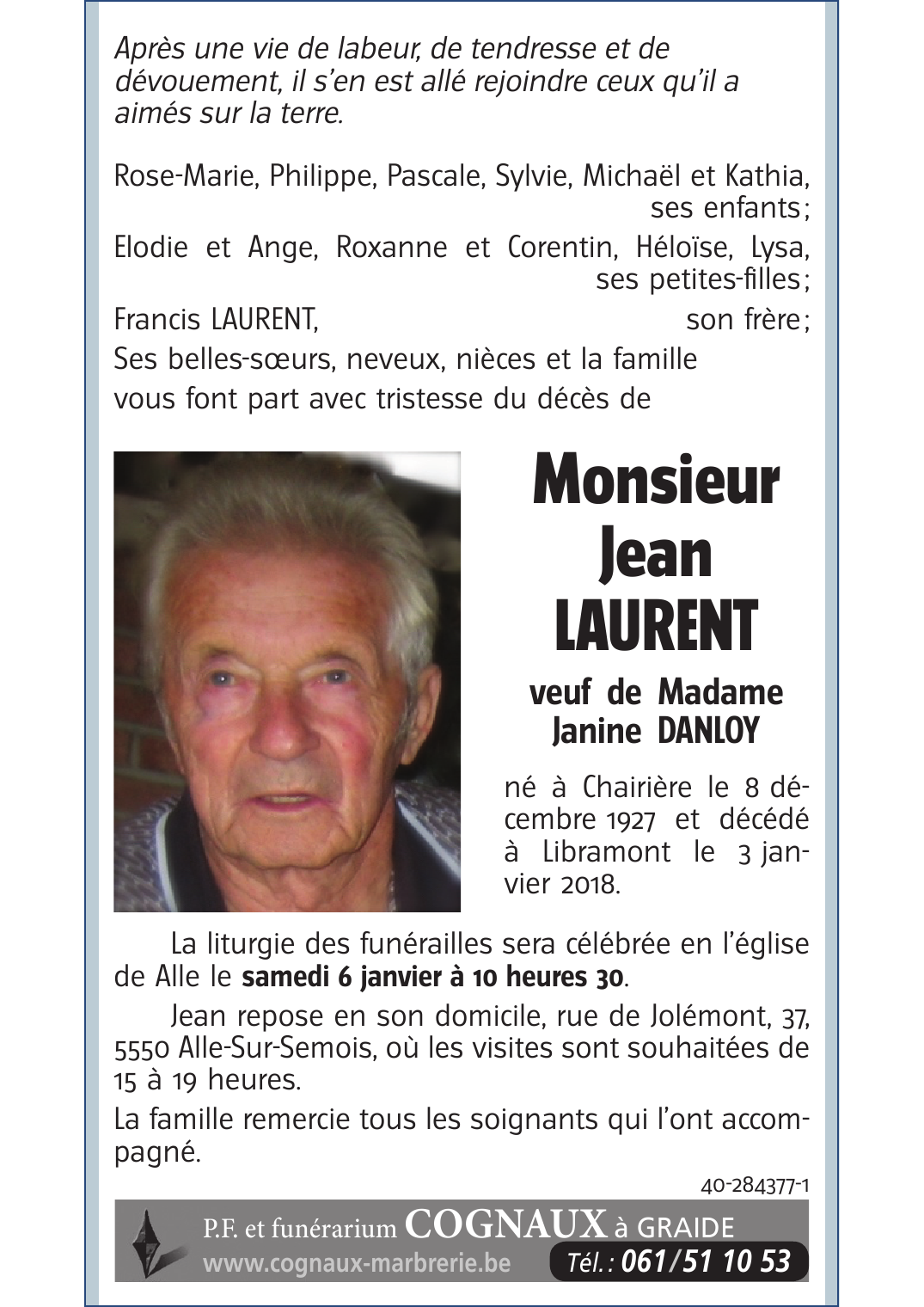 Décédé à Libramont (6800) le mercredi 3 janvier 2018 à l'âge de 90 ans