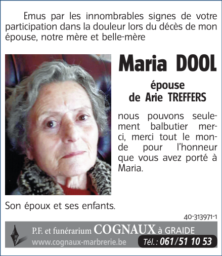Décédée à Rienne (5575) le mercredi 20 mars 2019 à l'âge de 81 ans