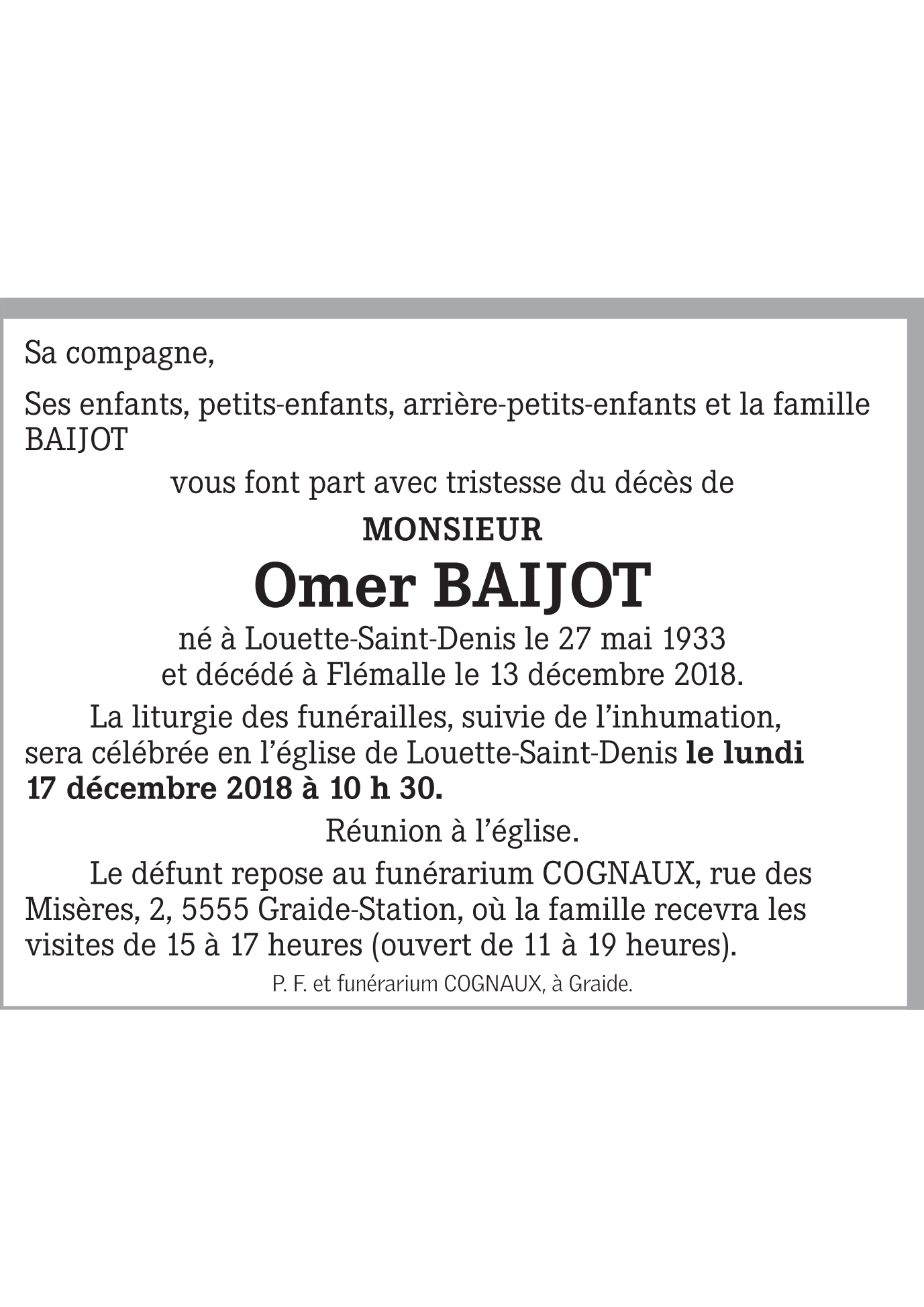 Décédé à Flémalle (4400) le jeudi 13 décembre 2018 à l'âge de 85 ans