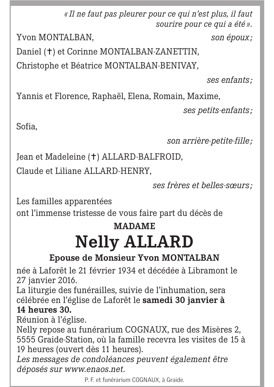 Décédé à Libramont (6800) le mercredi 27 janvier 2016 à l'âge de 81 ans